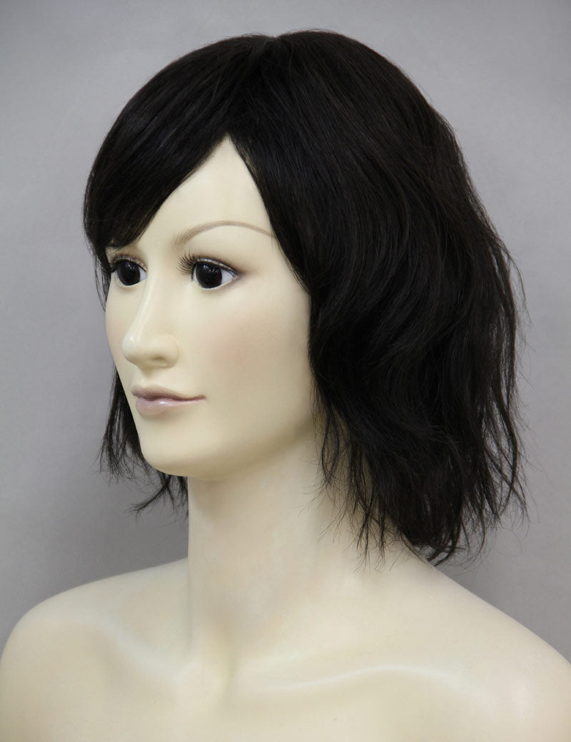 女性用 前髪ありミディアムウィッグ 人毛使用 ふんわりボリュームタイプ ウィッグネット付き